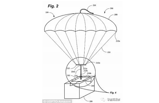 這個(gè)方案的核心是給商品裝上“降落傘”,這樣無(wú)人機(jī)不用落地,就可以實(shí)現(xiàn)商品配送,在一定程度上很好地節(jié)省了燃料成本。